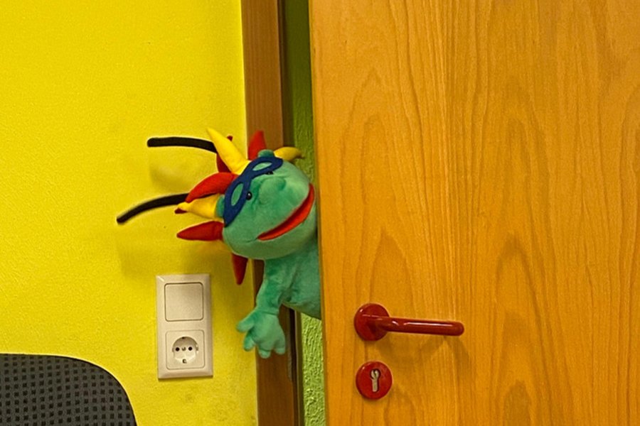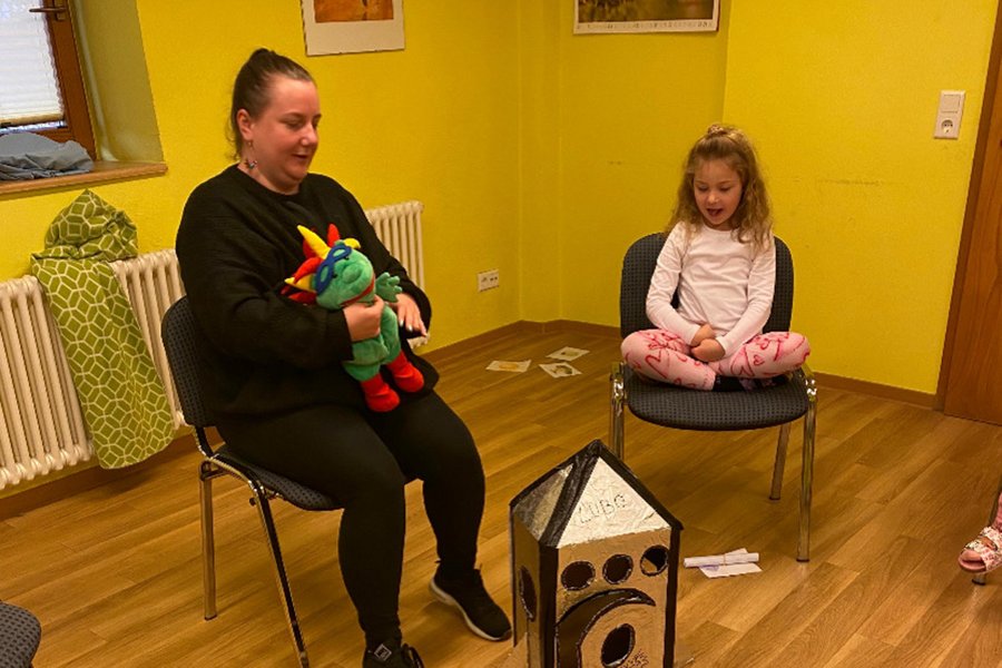 Im Rahmen des Projektes „ Lubo aus dem All “, (durchgeführt von Kita Sozialarbeiterin Anne Kullmer) bekamen die Vorschüler ganze achtmal Besuch vom kleinen Lubo, vom Planeten Luboland. Lubo hatte, für die Suche nach Freunden, eine weite Reise in seinem Raumschiff auf sich genommen. Für ihn war die Welt der Menschen noch Neuland, doch die Kinder konnten ihm einiges erzählen und berichten. Besonders spannend fand er die verschiedenen Gefühle und wie wir damit umgehen. Die kleine bunte Handpuppe, mit der stacheligen Frisur, wurde schnell zum Highlight im Alltag der Kinder. Spielerisch und mit viel Spaß wurden die verschiedenen Stunden von Frau Kullmer angeleitet.