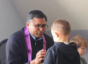 Im Anschluss sprach Kaplan Praveen den Segen und verteilte das Aschekreuz an alle Kinder und Mitarbeitenden, die daran teilnehmen wollten. Die Feier wurde musikalisch begleitet: Gemeinsam sangen die Erzieherinnen und Erzieher mit den Kindern das fröhliche Lied „Gottes Liebe ist so wunderbar!“.