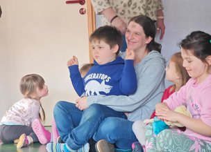 Zu Beginn las Einrichtungsleitung Jasmin Wittmann eine kindgerechte Geschichte zum Thema Aschekreuz vor. Dabei erfuhren die Mädchen und Jungen, was es mit diesem besonderen Zeichen auf sich hat und warum es für viele Christen eine wichtige Bedeutung hat.