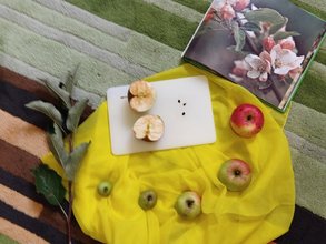 Die Kinder haben überlegt, welche verschiedenen Äpfel sie kennen. Sie haben gelernt, wie die unterschiedlichen Teile des Apfels heißen. Natürlich haben sie auch eine Apfelverkostung gemacht.