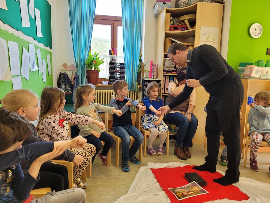 Pfarrer Christoph Herr zu Besuch in der Kath.Kita Elmstein
