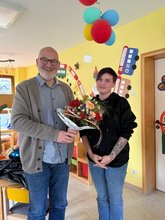 Im Rahmen einer Teamversammlung überreichte ihr Gemeindereferent Michael Kolar als KiTa-Trägerbeauftragter einen Blumenstrauß und wünschte ihr gemeinsam mit den beiden KiTa-Teams im Namen des Pastoralteams und der Pfarrei Gottes Segen für ihre neue und sicherlich auch herausfordernde Aufgabe.