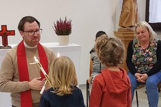 Zuvor hatte Pfarrer Herr anschaulich erzählt, wer der heilige Blasius war. Als Bischof im 4. Jahrhundert soll er einem Jungen geholfen haben, der an einer Fischgräte zu ersticken drohte. Diese Begebenheit begründet den Brauch des Segens, der jedes Jahr am 3. Februar gespendet wird. Die Geschichte machte deutlich, wie sehr sich christliche Traditionen um Schutz, Fürsorge und Nächstenliebe drehen.