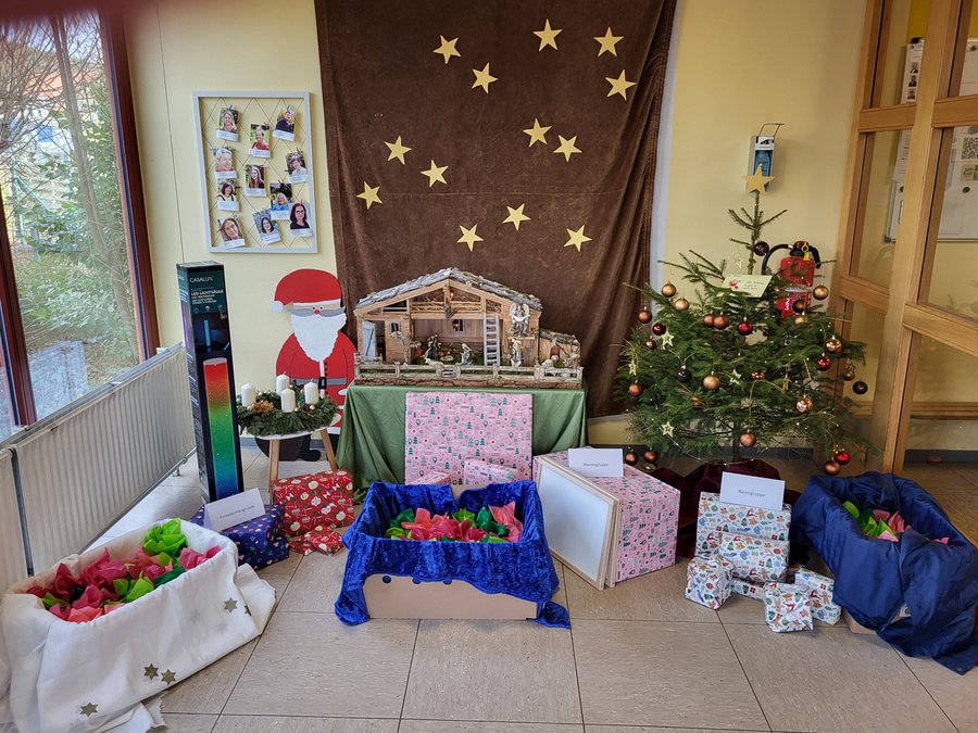 Als sie nachsahen, lagen neben der Krippe und dem geschmückten Tannenbaum viele Geschenke für alle drei Gruppen bereit. Zusätzlich gab für jedes einzelne Kind noch ein kleines Päckchen.